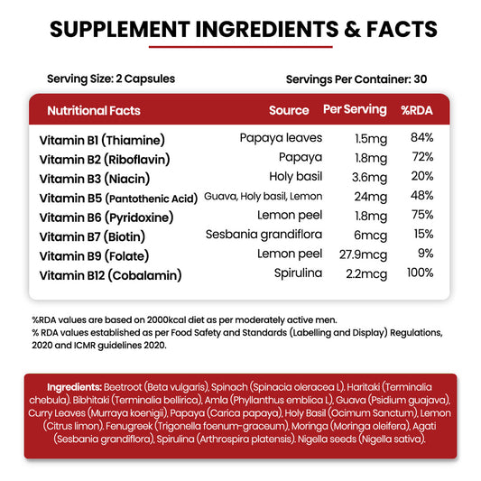 Vlado's Himalayan Organics Natural Vitamin B12 Supplement | B1,B2,B3,B5,B6,B7,B9,Moringa| Boost Energy Level | Good For Digestion And Nerve Health | Glowing Skin For Men & Women - 120 Vegetarian Capsules