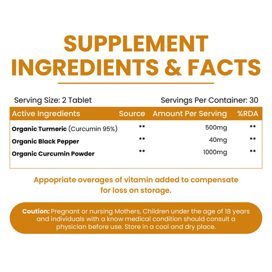 Vlado's Himalayan Organics - Organic Curcumin Tablets 1500+ Mg/Serving with Black Pepper and 95% Curcuminoids | Anti inflammatory Supplement for Adults | With Curcuma Longa, Turmeric | 60 Veg Tablets