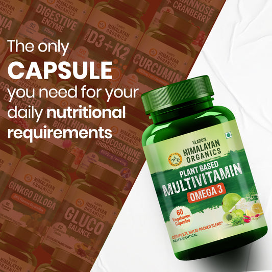 Vlado’s Himalayan Organics Vegan Omega-3 Capsules with plant based Multivitamin, EPA, DHA, 25+ Ingredients - 60 veg capsules