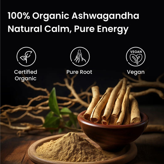 Vlado's Himalayan Organics 100% Organic Ashwagandha Powder 100gm - Withania Somnifera | Pure Ashwagandha Powder Organic -Support Muscle Recovery & Boost Energy Level | USDA Certified for Vitality, Strength & Stress Management | 100gm