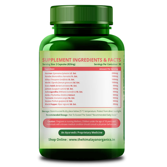 Vlado's Himalayan Organics Diabetes Support Supplement | Helps Control Blood Sugar Levels | 100% Vegetarian (60 Tablet)