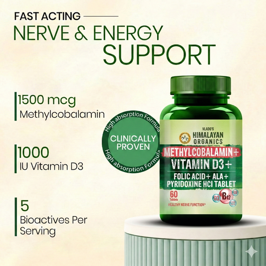 Vlado's Himalayan Organics Vitamin B12 1500mcg with Vitamin D3 | Methylcobalamin 1500mcg with Vitamin D Tablets with Alpha Lipoic Acid , Folic Acid I B12 Vitamin Tablets - Best Vitamin B-12 Supplement For Men & Women - 60 Tablets