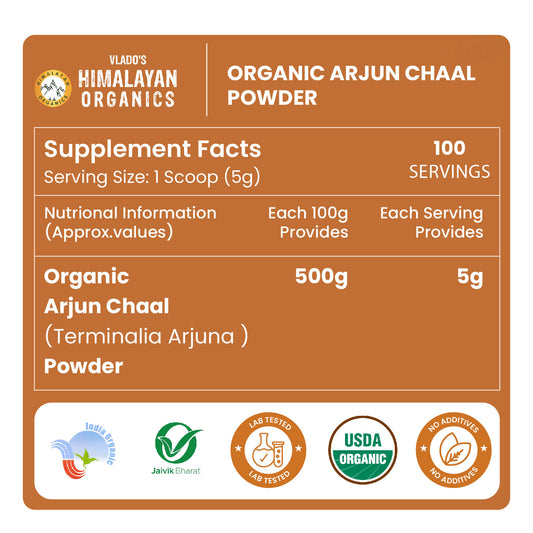 Vlado's Himalayan Organics Arjun Chaal Powder-500G | 100% Natural & Pure Herbal Arjun Ki Chaal Powder For Men & Women I USDA Organic | To Support Heart Health & Promote Good Cholesterol