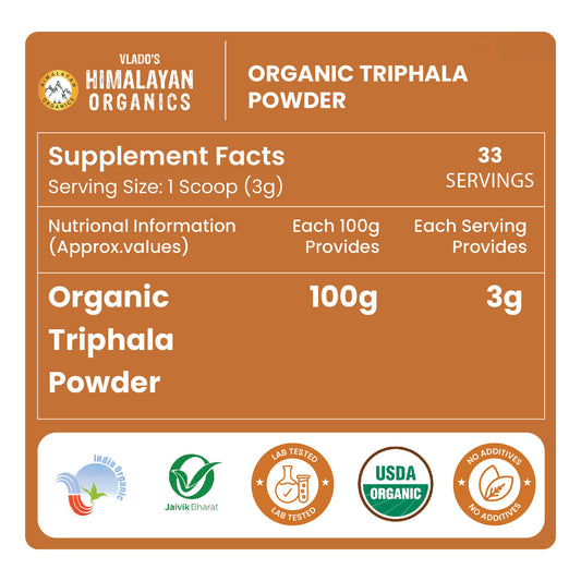 Vlado's Himalayan Organics Triphala Powder - 100 GM | Triphala Churna For Gut, Immune & Intestinal Health | Colon & Digestion, For Balanced Bowel & Gut Health, Contains Bioactives and Antioxidants, GMP & NPOP Certified Organic I Helps Relieve Constipation