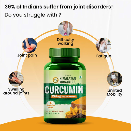 Vlado's Himalayan Organics Curcumin With Biopiperine 1500mg Tablets With 95% Curcuminoids Supplements For Better Absorption | Good For Skin & Joint pains | Immunity Booster for Men And Women - 90 Veg Tablets