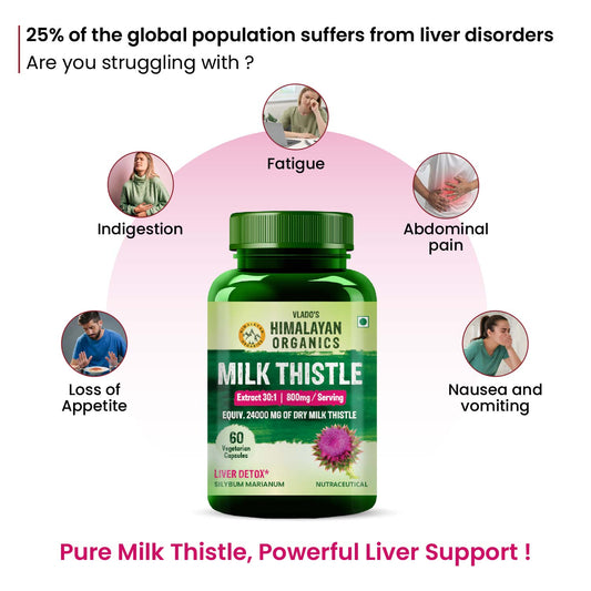Vlado's Himalayan Organics Milk Thistle Extract Detox Supplement For Men And Women With 800Mg Of Silybum Marianum For Healthy Liver | Helps in Cleanse Liver - 60 Vegetarian Capsules