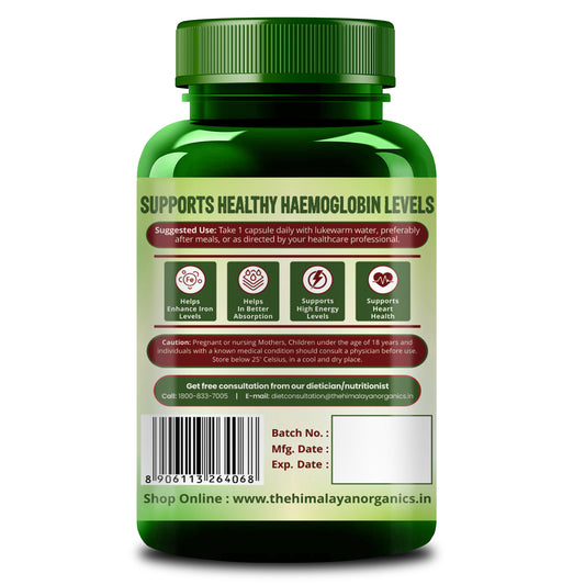 Vlado's Himalayan Organics Plant-Based Iron Supplement With Folate | Improved Hemoglobin & Oxygen Capacity | Stomach Friendly | Boost Energy - 60 Veg Capsules