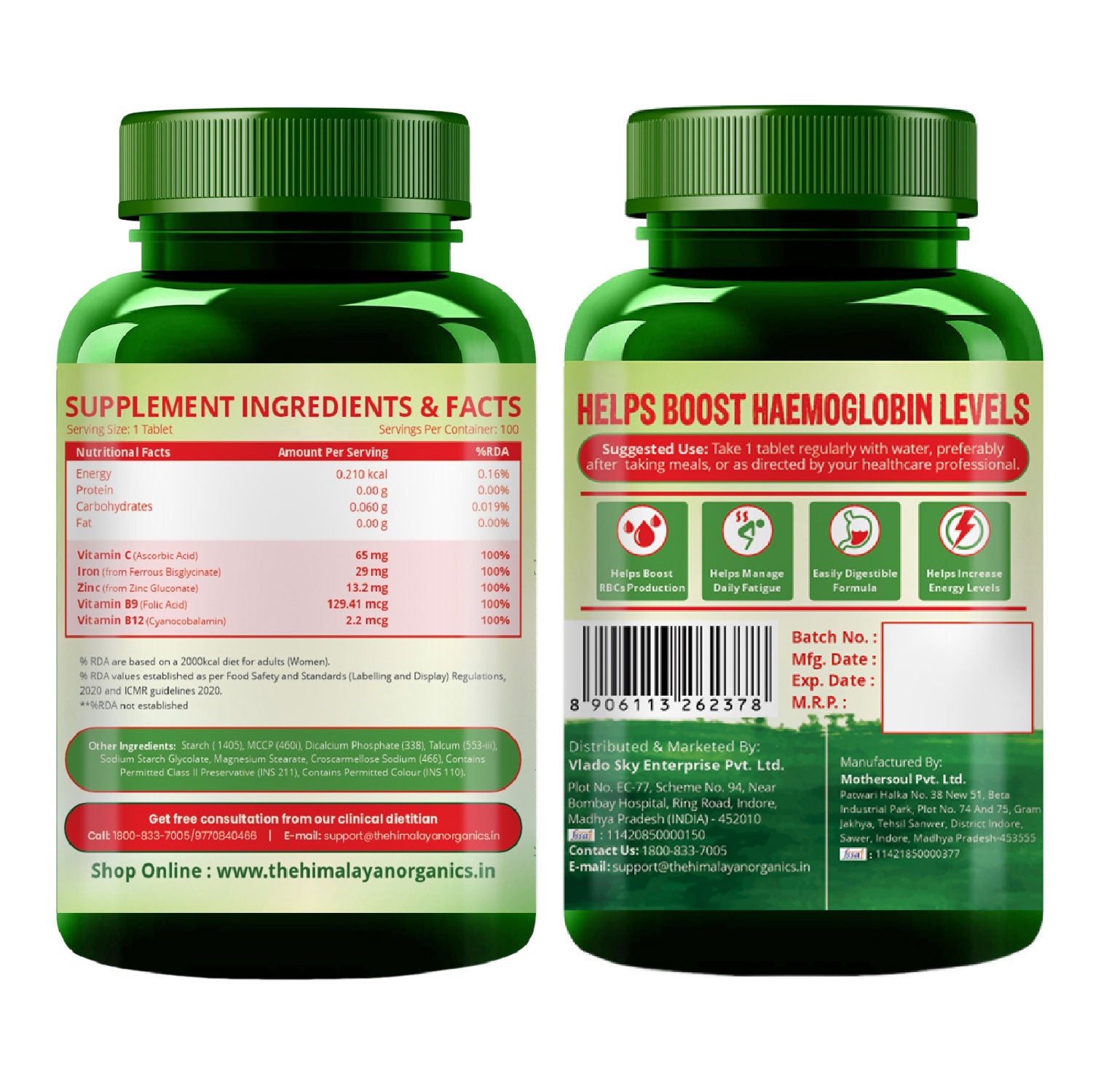 Himalayan Organics Chelated Iron + Vitamin C is a vegan formula made under expert supervision as per the RDA protocols & certified by relevant bodies, making it perfectly fit for consumption & side-effect free.