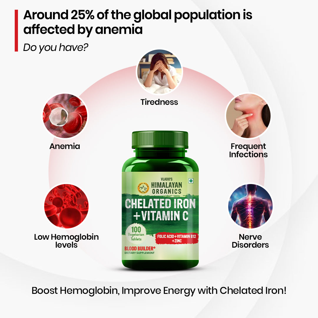 In general, iron is difficult to digest & absorb. Chelated Iron is gentle on the stomach. So Vitamin C along with Iron forms a compound in the stomach that enhances the absorption of iron & fulfills iron requirements.