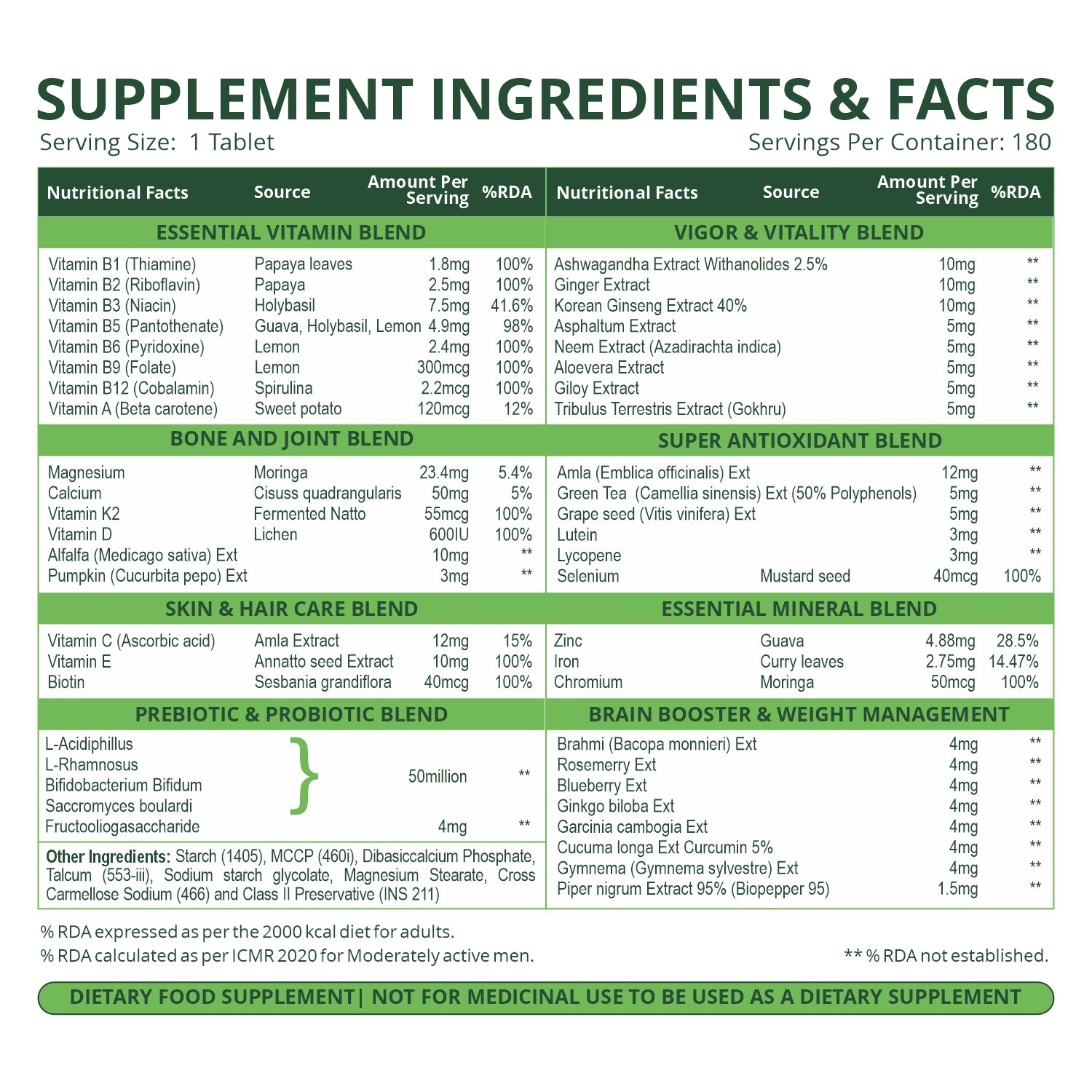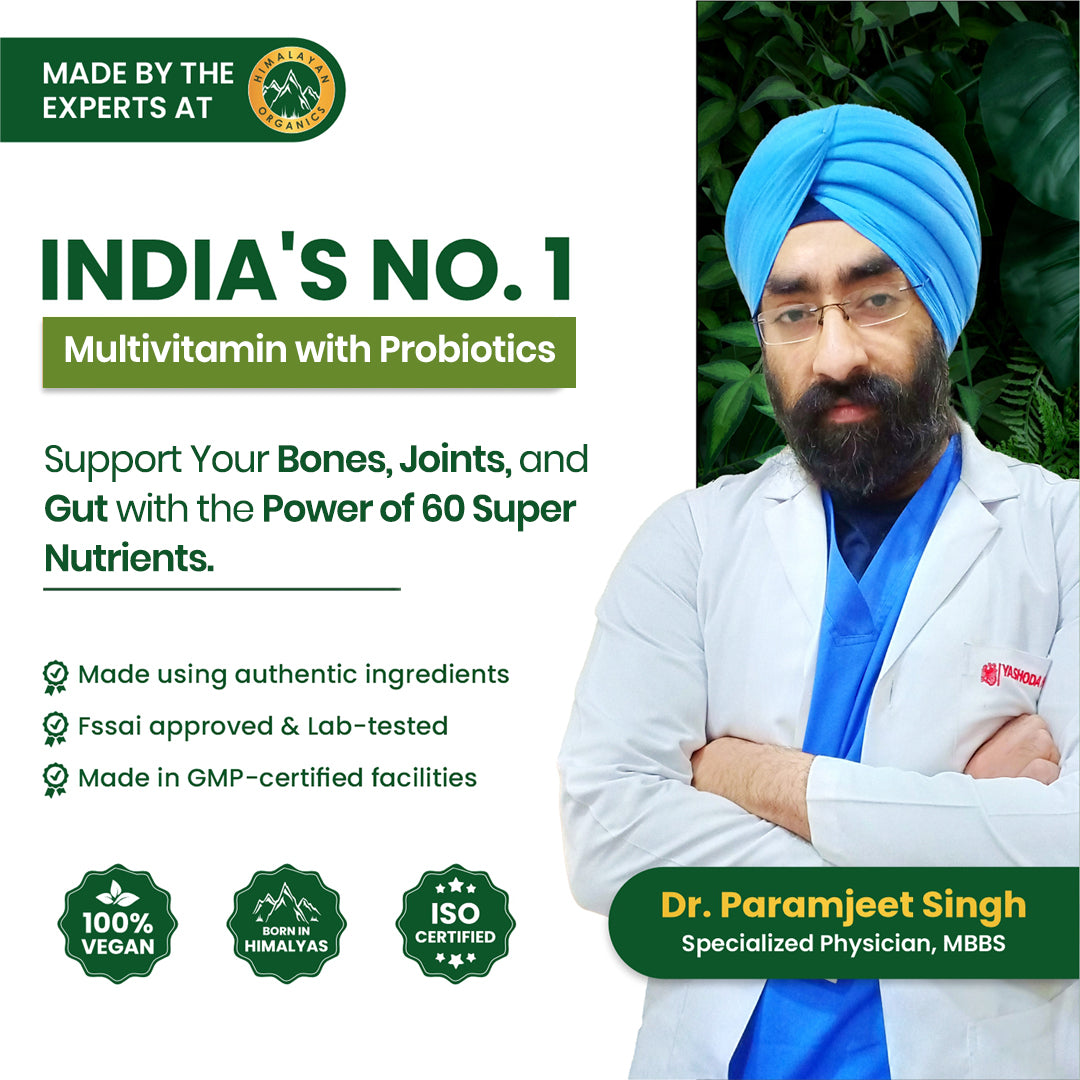 Vlado's Himalayan Organics Multivitamin With Probiotics - 60 Ingredients Supplement For Men And Women - 180 Veg Tablets