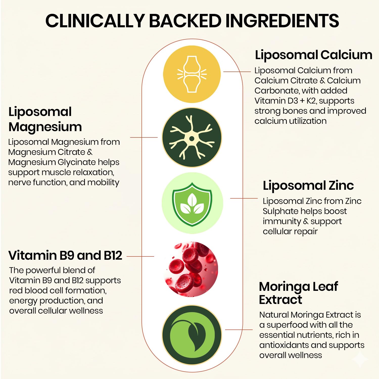 Calcium, magnesium, and zinc are essential minerals that play a role in various bodily functions. While calcium contributes to maintaining bone structure, magnesium supports muscle relaxation, and zinc is involved in immune function. Combined with vitamin D3 and K2, this plant-based supplement is formulated to offer a well-rounded nutritional profile. This plant-based supplement features a blend of calcium, magnesium, and zinc, combined with vitamin D3 and K2. These essential nutrients are known for their role in maintaining strong bones, supporting muscle function, and contributing to immune health. Designed for those seeking a plant-based option to complement a balanced diet. Support your daily wellness routine with a carefully crafted blend of plant-based calcium, magnesium, and zinc, along with essential vitamins D3 and K2. These nutrients work together to assist in maintaining bone density, promoting muscle function, and contributing to overall well-being. Designed for those seeking a natural friendly supplement, this formula is made to complement a balanced diet and active lifestyle. This plant-based supplement delivers a balanced blend of calcium, magnesium, and zinc—essential minerals that contribute to bone strength, muscle function, and immune support. Enhanced with vitamins D3 and K2, which aid in calcium absorption and utilization, this formula is designed to support an active lifestyle and overall well-being. Crafted with naturally sourced ingredients, this plant-based formula provides calcium for bone health, magnesium for muscle relaxation, and zinc for immune function. With vitamin D3 and K2 aiding in calcium absorption, this supplement is designed to support overall well-being in a natural and balanced way.