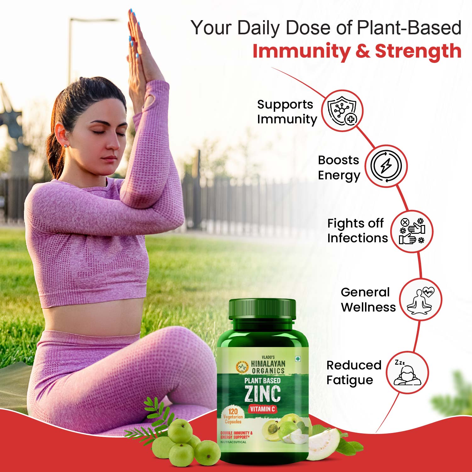 DUAL ACTION OF ZINC & VITAMIN C: These Capsules are a well-researched, expert-approved plant-based formulation that supplies an adequate balance of Zinc and Vitamin C for your daily needs. Not just that, Vitamin C with Zinc is easily absorbed in your body and hence, provides you the daily nutrition of both mineral and vitamin, that too from plant-based extracts sourced from most healthy farms.