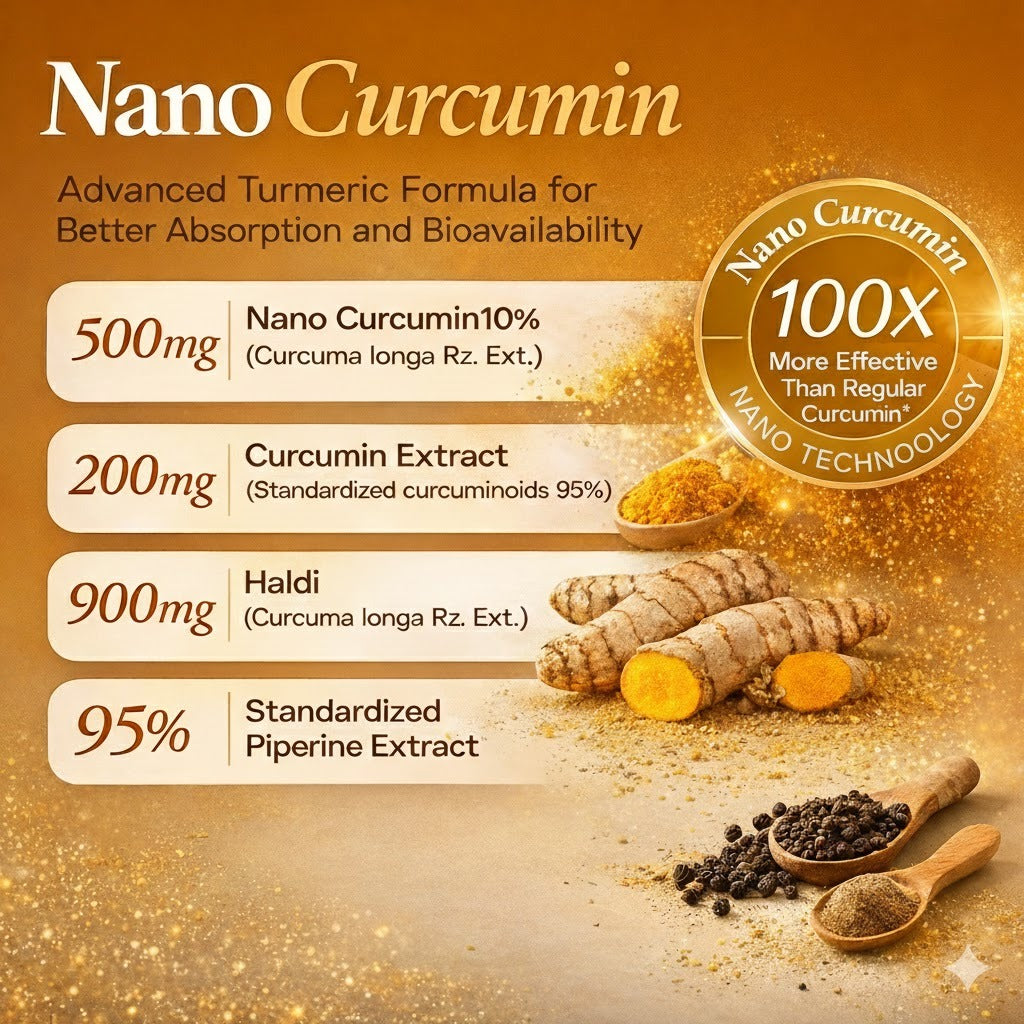 Vlado’s Himalayan Organics Nano Curcumin delivers 500 mg of 95% standardized curcuminoids with advanced Nano Technology for superior absorption. Fortified with Piperine (Bioperine®) to boost bioavailability up to 40X, it supports joint comfort, inflammation balance, immunity, antioxidant protection, gut health, and natural detox. 100% natural, lab-tested, and safe for daily use.