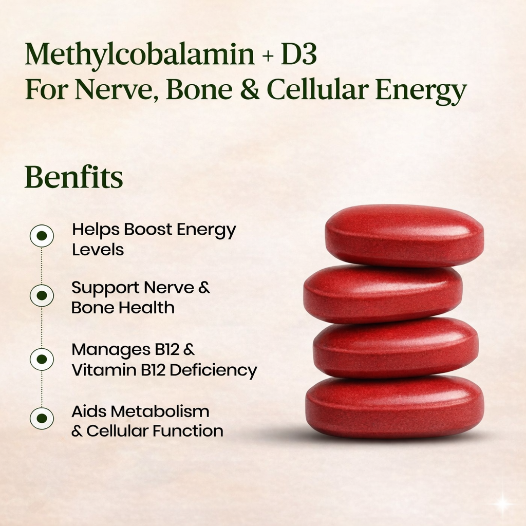 Vitamin B12 1500mcg with Vitamin D3 | Vitamin B12 Supplements for Men&Women | Methylcobalamin 1500mcg with Vitamin D Tablets - 60 Tablets